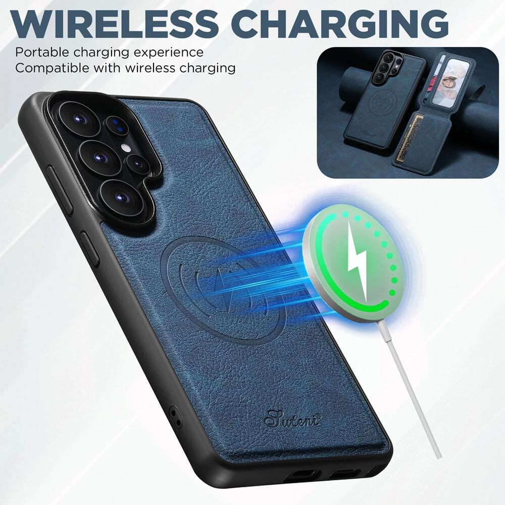 Magnetic Detachable Wallet Leather Samsung Case with Wireless Charging