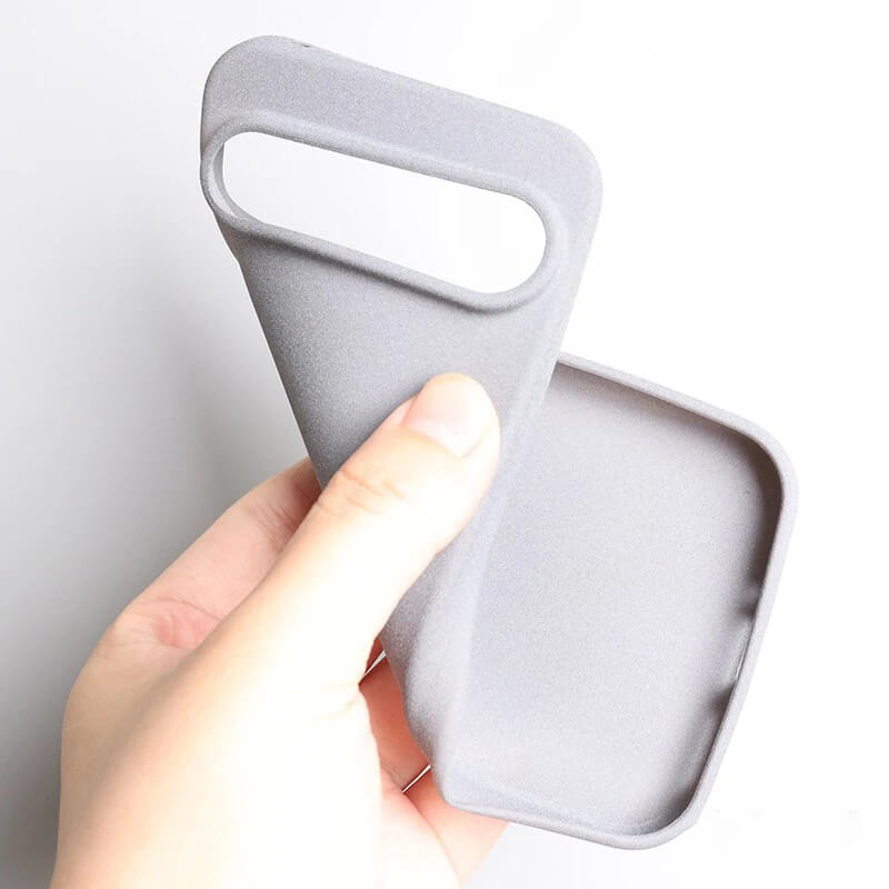 A matte sandstone-textured back defines this Pixel case, with a fine grain and muted surface across the panel. The finish stays consistent by color option and keeps a flat, understated look.